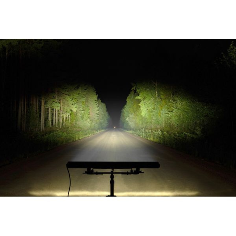 The beam pattern combines impressive range with excellent width. It opens immediately from the front of the vehicle to cover the road from kerb to kerb, while a bright central hotspot projects far into the distance. Vertical cut-off ensures controlled light output for vehicle-mounted use, while still providing sufficient illumination for hilly terrain or roof installations.