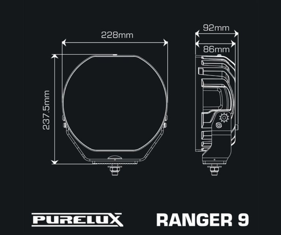 The Purelux Ranger 9 White is a bold and exceptionally powerful 9" auxiliary LED light designed for SUVs, vans, commercial vehicles and heavy equipment. Engineered for maximum long-range visibility and a premium aesthetic, this model delivers outstanding performance thanks to advanced PowerBoost technology, a unique combination spotlight and a striking white housing that blends seamlessly with light-coloured vehicles.